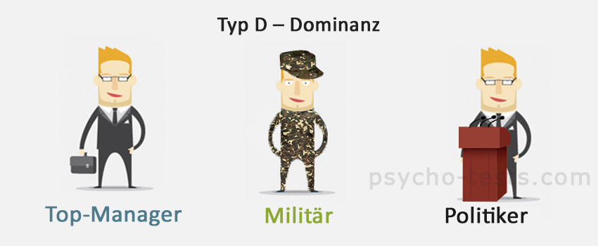 Menschen des Typs D streben in der Regel nach höchsten Führungspositionen. Oft führt ihr aggressiver Arbeitsrhythmus zu Ergebnissen und wird von ihren Vorgesetzten belohnt.
