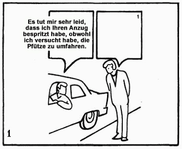 Vor Ihnen befinden sich 24 Zeichnungen, auf denen jeweils zwei sprechende Personen dargestellt sind. Die Worte der ersten Person sind im Quadrat links geschrieben, und Sie sollen sich die Antwort der anderen Person vorstellen. Formulieren Sie eine kurze Antwort und wählen Sie dann aus den vorgeschlagenen Antwortoptionen diejenige aus, die in Bedeutung und Tonfall Ihrer Antwort am nächsten kommt. Versuchen Sie nicht, andersherum vorzugehen – geben SIE IMMER zuerst Ihre Antwort und wählen Sie DANACH die Option, die ihr am nächsten kommt.